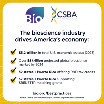 The Biotechnology Innovation Organization (BIO) and the Council of State Bioscience Associations (CSBA) released its latest biennial report on best practices in bioscience economic development initiatives. The report outlines the policy strategies - R&D incentives, biomanufacturing investments, workforce development programs, and early-stage capital tools - driving U.S. biotechnology leadership.